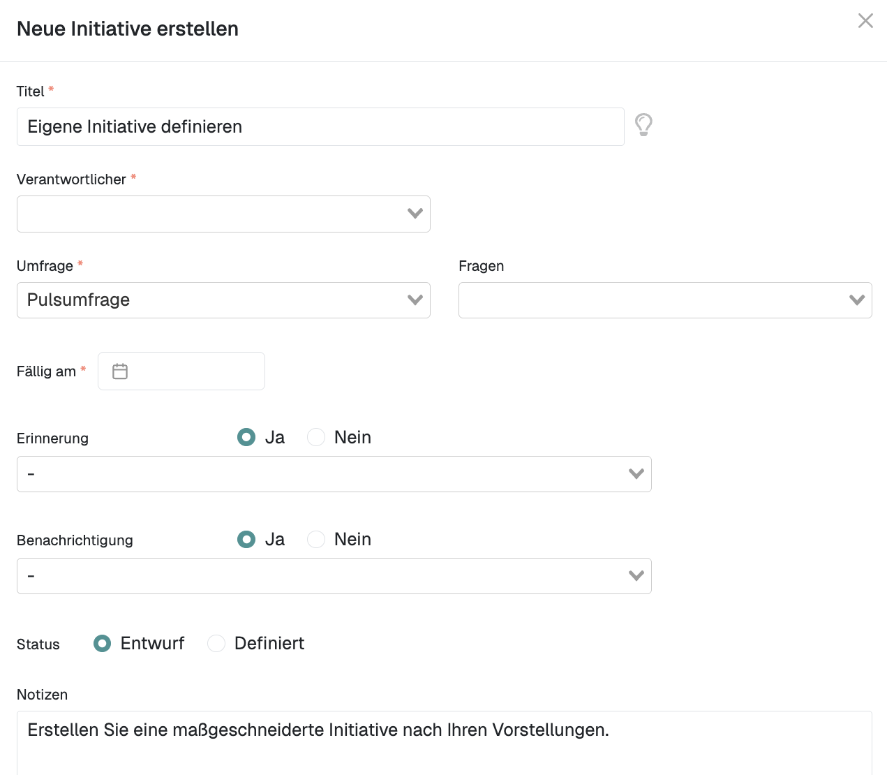 Initiativen benennen, Verantwortliche festlegen, Deadlines definieren und eigene Notizen hinzufügen